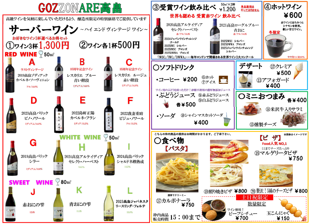 会 場:高畠駅太陽館(JR高畠駅※ワイナリーから徒歩10~15分)午前10時~午後8時